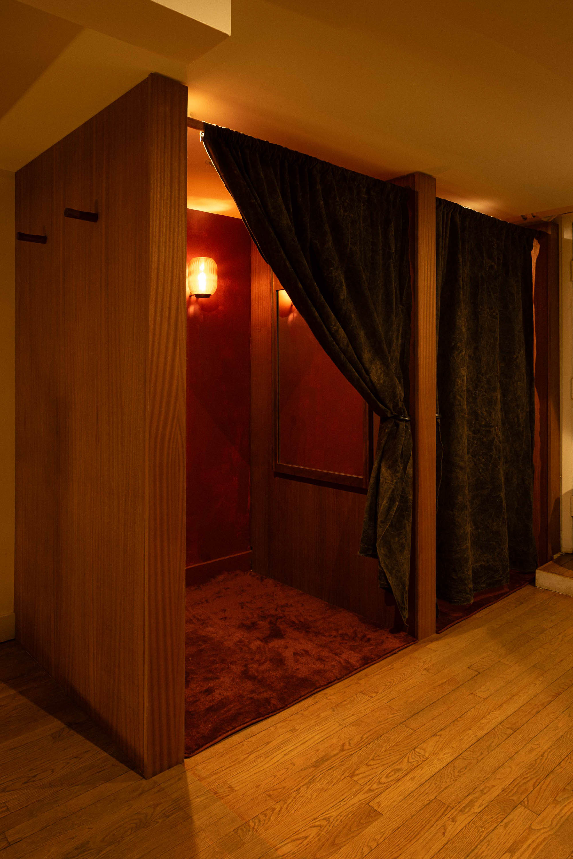 WE DESIGNED CUSTOM WALLS, STOOLS AND HANGERS FOR THE ROOMS, AND SOURCED MIRRORS, LIGHTS, CARPET, FABRIC, AND ART.