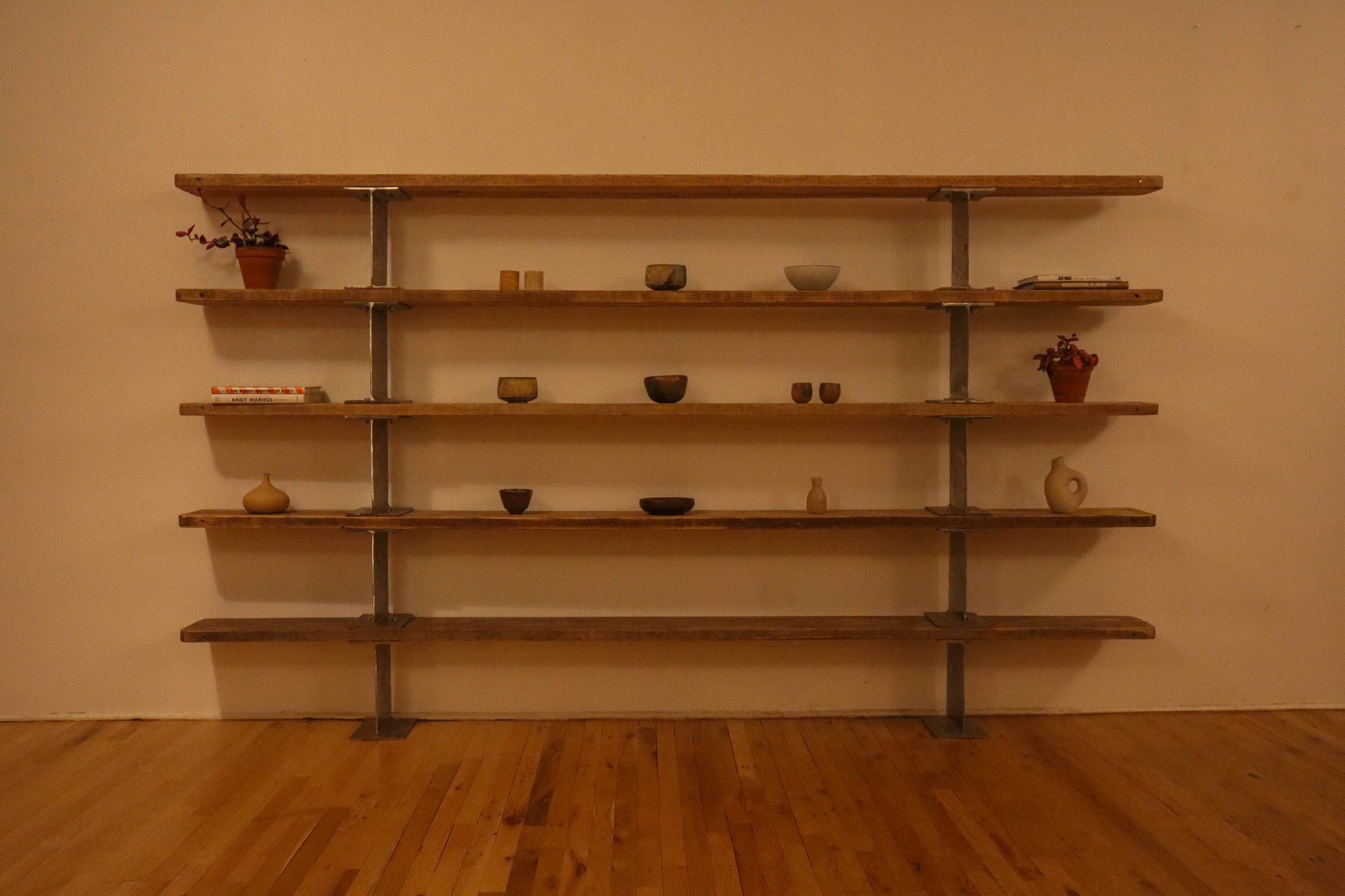 PART OF THE INtERIOR OF THIRDSPACE, THE "BEAM" SHELF IS LOCATED IN THE HEART OF BUSHWICK BROOKLYN, WITH IT'S NEIGHBORS BEING METAL SHOPS AND JUNKYARDS. THE ALUMINUM I-BEAMS AND SCAFfOLDINg BOARDS WERE LITERALLY SOURCED AROUND THE CORNER.